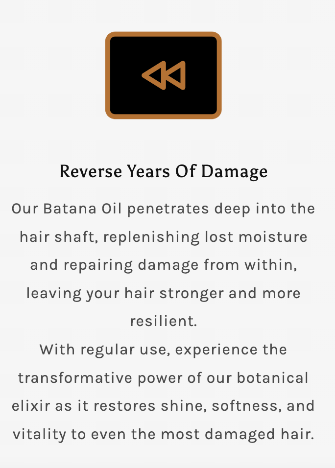 Our formula is powered by 100% Unrefined Batana Oil, a single, carefully sourced ingredient that targets hair growth holistically.