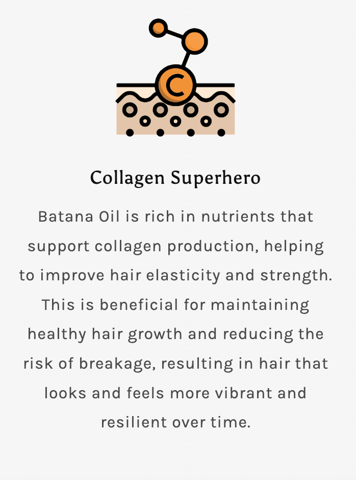 Our BATANA POWERED growth blend is formulated with a beautiful mix of carefully sourced natural batana, collagen, vitamin E and Arginine that work in tandem to help support thicker, denser, fuller looking hair.