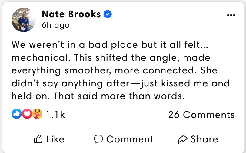 Said it eliminated the physical barriers that made her avoid intimacy - no more complaints about discomfort or strain.