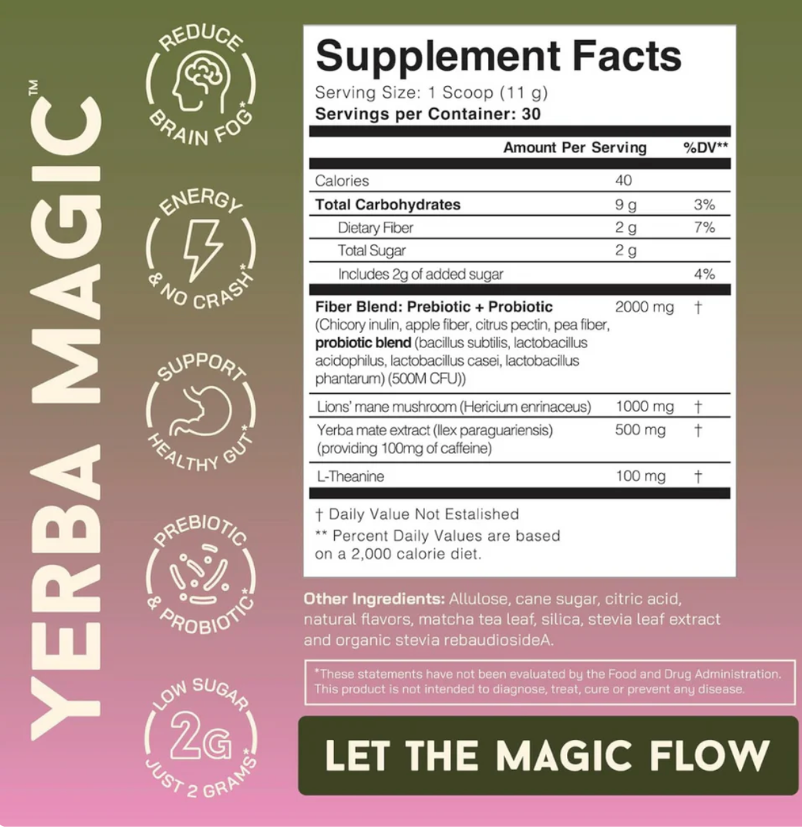 Yerba Magic is a powerful 3-in-1 energy drink mix that unites the clean, sustained energy of yerba mate with gut-friendly prebiotics and probiotics, plus brain-boosting nootropics like Lion’s Mane and L-Theanine. If you’re looking for an alternative to jittery coffee or sugary energy drinks, you’re in the right place.
